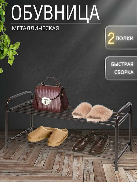 Компактная и практичная этажерка для обуви с двумя полками, идеально подходящая для прихожей, коридора или гардеробной. ЭТК2 позволяет удобно организовать хранение обуви, экономя пространство и поддерживая порядок. Преимущества: Прочный металлический каркас обеспечивает надежность и долговечность Антикоррозийное покрытие, устойчивое к механическим повреждениям 2 вместительные полки для хранения разной обуви Пластиковые наконечники на опорах защищают пол от царапин и предотвращают скольжение Высота между полками 200 мм, удобно для обуви разной высоты Компактный дизайн, идеально для небольших помещений Поставляется в разобранном виде для удобной транспортировки Максимальная нагрузка до 20 кг, позволяет размещать тяжелую обувь Легкая и быстрая сборка Устойчивая конструкция для комфортного использования Габаритные размеры: Размер (ДхШхВ): 790х330х360 мм Вес нетто: 2,2 кг Количество полок: 2 Высота между полками: 200 мм Этажерка ЭТК2 — это практичная полка для обуви, надежный стеллаж, компактная обувница и удобная подставка, идеально подходящая для прихожей, коридора и гардеробной.