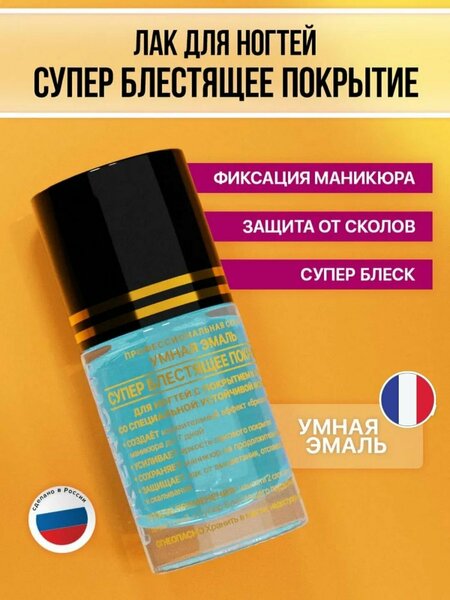 Описание Представляем вашему вниманию глянцевый топ закрепитель для ногтей без лампы из серии Умная Эмаль "Супер блестящее покрытие". Этот продукт разработан для обеспечения долговечного и сияющего маникюра. Его уникальная формула позволяет легко наносить лак, придавая ему невероятный блеск и идеально гладкую поверхность. Косметическое средство для придания глянцевой, блестящей поверхности декоративному лаку. Этот лак для ногтей подойдет как для длинных, так и для коротких ногтей. Защищает и укрепляет цветной лак от выцветания и отслаивания, предотвращает сколы. Блестящий топ дополнит дизайн вашего маникюра и сохранит его на длительное время, идеально подходит для использования в домашних условиях, быстро высыхает. Бриллиантовая пудра в составе заполняет неровности, делает ноготь гладким и красивым. Закрепитель подходит для использования с любыми лаками и не требует ультрафиолетового излучения для сушки, что делает его идеальным выбором для домашнего использования. Продукт защищает ваши ногти от сколов и повреждений, продлевая стойкость маникюра до нескольких дней. Легкость в использовании и высокое качество делают этот топ незаменимым спутником для каждой модницы. Убедитесь, что ваш маникюр всегда выглядит свежо, ярко и аккуратно с помощью нашего глянцевого топа.