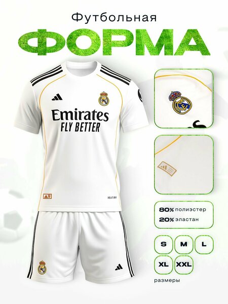 Футбольная форма Реал Мадрид — это не просто спортивный комплект, а стиль и дух настоящего футбольного клуба. Идеально подходит для поклонников "Реала" любого возраста, которые хотят почувствовать себя частью легенды мирового футбола. Комплект включает футболку и шорты, выполненные в традиционных цветах клуба: белый и синий, с узнаваемыми эмблемами, которые подчеркивают принадлежность к одному из самых успешных клубов мира. Этот комплект предназначен как для тренировок, так и для активных игр на поле, что делает его универсальным выбором для любого спортсмена. Футболка выполнена из высококачественного полиэстера, который обеспечивает отличную вентиляцию, позволяя коже дышать даже в самые жаркие дни. Легкость и прочность материала гарантируют долгий срок службы даже при интенсивных занятиях. Особенности: Качество ткани: Высококачественный полиэстер, устойчивый к износу и легко очищающийся. Дизайн: Официальный дизайн с логотипом Реал Мадрид, идеально подходит для фанатов клуба. Комфорт: Идеально подходит для тренировок и игр, обеспечивая свободу движений. Универсальность: Подходит для мальчиков, девочек и подростков. Идеальный подарок: Отличный выбор для поклонников футбола на день рождения, Новый год или другие праздники.