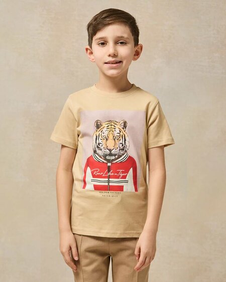 Детская бежевая футболка с принтом Удобная и стильная футболка, идеально подходящая для повседневной носки. Изготовлена из мягкой ткани, обеспечивающей воздухопроницаемость и свободу движений. Преимущества: Мягкий и приятный на ощупь материал Отличная воздухопроницаемость Подходит для активных игр и прогулок Простота в уходе Характеристики: Пол: Мальчики (2–8 лет) Цвет: Бежевый Принт: С рисунком Вырез: Круглый Рукав: Короткий Уход: Машинная стирка в холодной воде Состав: 100% хлопок
