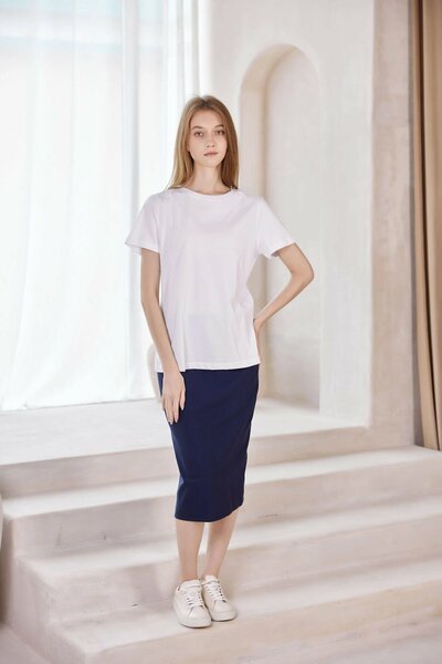 Базовая однотонная футболка с короткими свободными рукавами. Практичная и комфортная вещь на каждый день.
