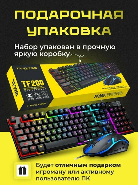 Игровая клавиатура и мышь TF200, ргб-подсветка, бренд T-Wolf