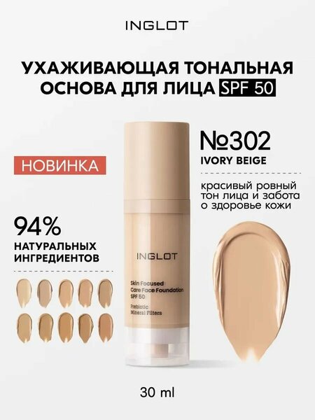 INGLOT Тональная крем для лица Skin Focused Care SPF 50, 30 мл, № 302