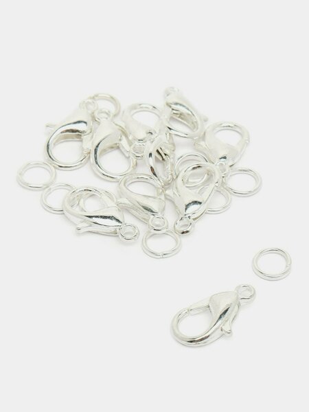 Карабин лобстер, цвет Серебрянный, застежка для бижутерии, браслетов, цепочек, чокеров, брелков, 10 шт