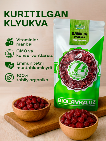 {"widgets":{"@light/ProductM2bEdoOnlyBadge":{"/content/page/fancyPage/defaultPage/m2bEdoOnlyBadge":{"wrapperProps":{"margins":{"top":"2"}},"isM2bEdoOnlyEnable":false}}},"meta":{"/content/page/fancyPage/defaultPage/m2bEdoOnlyBadge":{"name":"@light/ProductM2bEdoOnlyBadge"}},"collections":{"views":{"defaultOffer":"vi_6875462213697669020_bi_7337964549145798966"},"viewItem":{"vi_6875462213697669020_bi_7337964549145798966":{"id":"vi_6875462213697669020_bi_7337964549145798966","composeId":"6875462213697669020","buyOptionId":"bi_7337964549145798966"}},"buyOption":{"bi_7337964549145798966":{"id":"bi_7337964549145798966","title":"Клюква сушёная 250 гр, BIOLAVKA, подслащённая, без ГМО и красителей,","offerId":"DCqDDJEvTMOgkZ26vM5jBA","slug":"klyukva-sushenaya-biolavka-podslashchennaya-bez-gmo-i-krasiteley-250-gr","trackingLinks":{"cpa":"/Smw0zisHGEoR1ANbfZ3NmXAYa20k","promotionUrl":"/r8yCa1aIF6tmklf2DHJpl1pFk779"},"skuId":"4476700342","productId":"1243497078","categoryId":"61512182","navnodeId":"61512183","departmentId":"54434","showUid":"17728761808105230984906001","counterStep":1,"minimum":1,"maximum":20,"price":{"value":69000,"currency":"UZS"},"vendorId":"72768879","feeShow":"OTNDnItfwRMlLJby2gHopazwOZRNOxJSR5hp8p8f3eotaWvlD0s0kVi9-tQO2bA2el_66O4uIGjXS2r5Ee9YN5m5FQnjxKcStskTqOer-P6xsNlj2qw9_PzuGyI1HuDwF8qrWcIRP90vV79lZfMA7ooPXR6IFdLVpPr35f0AqnyRpostADn-39HcouvsO27tNlSj2ToH6rbaDVauaHIO7fglFr7yke86qcrQHKkxsome8v8YWxTVdAQx6FkvPvJL3TpUX79xNCw3pLFGJ8-6DEgh_Z28w--4BfnYvNiGd02uwNZ0CtuOBQ,,","feedId":"57080431","feedOfferId":"57080431.KLYUKVA","shopId":"431782","supplierId":"214116786","businessId":"201355805","supplierName":"BIOLAVKAUZ","businessName":"BIOLAVKAUZ","hasAnySize":false,"hasAnyDelivery":true,"benefitTypeCode":"waremd5","promos":[{"key":"-i0_5I7BGjbx0GX0PhHV3A","type":"empty-promo","shopPromoId":"cf_135724","anaplanId":"cf_135724","landingUrl":"https://market.yandex.ru/special/empty-promo-landing?shopPromoId=cf_135724"}],"flags":["isFby","isOnDemand"],"analytics":{"warehouseId":"311","paymentType":"ANY","paymentMethodTypes":["BY_CARD_ONLINE","BY_CARD_TO_COURIER","IN_CASH"],"deliveryOptions":[{"deliveryType":"delivery","fromDate":1772962580,"toDate":1772962580,"priceInfo":{"value":0,"currency":"UZS"}},{"deliveryType":"delivery","fromDate":1772962580,"toDate":1772962580,"priceInfo":{"value":0,"currency":"UZS"}}],"shopSku":"KLYUKVA","placementType":"3P","ownMarketPlace":true,"shopSlug":"yandex-market","yandexBnplInfo":{"enabled":true},"promos":[{"key":"-i0_5I7BGjbx0GX0PhHV3A","type":"empty-promo","shopPromoId":"cf_135724","landingUrl":"https://market.yandex.ru/special/empty-promo-landing?shopPromoId=cf_135724","isPersonal":false,"description":"Новые_акции_для_лендингов_полок_УЗБ_к_столу_1201"}],"hypeBadge":{"hasBadgeRare":false}},"deliveryType":"DELIVERY","imageMeta":{"namespace":"mpic","groupId":12390472,"key":"2a000001979e0d03ee2ce94cc616a858091e"}}},"market2Business":{"current":{"id":"current","isM2b":false}}}}