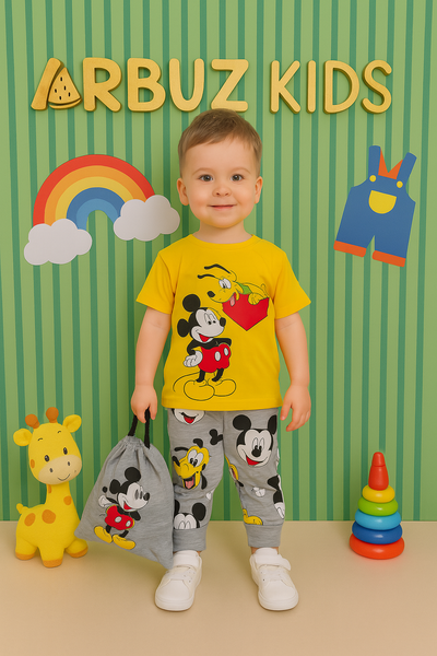 Костюм для мальчика с Микки Маусом — футболка, штаны и сумка