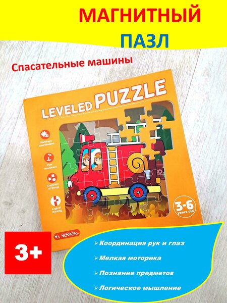 Магнитный пазл-головоломка "3 в 1" - это уникальный и интересный способ обучения и развлечения для малышей в возрасте от 3 до 7 лет. В набор входят три различных элемента: пазл, пазл-книга и головоломка, что позволяет ребенку развивать моторику, координацию движений и логическое мышление. Пазл состоит из 20 магнитных элементов, изображающих спасательные машины. Задача ребенка - собрать все элементы в единую картинку, стимулируя логическое мышление и координацию движений. Пазл-книга выполнена в виде книги с магнитными элементами, изображающими самолет, корабль и машины. Задача ребенка - собрать все страницы в единую книгу, что также способствует развитию моторики и координации движений. Головоломка состоит из набора магнитных элементов, которые нужно правильно расположить на доске. Это стимулирует развитие моторики и координации движений, а также логического мышления. Набор пазлов выполнен из качественного картона и магнитов, что обеспечивает долговечность и безопасность использования. Тематика пазлов посвящена спасательным машинам, что делает процесс обучения еще более интересным и увлекательным. Магнитный пазл-головоломка "3 в 1" подходит для мальчиков и девочек, а также для детей разного возраста - от 3 до 7 лет. В целом, магнитный пазл-головоломка "3 в 1" является отличным выбором для обучения и развлечения малышей, сочетая в себе различные элементы, способствующие развитию моторики, координации движений, логического мышления и памяти.