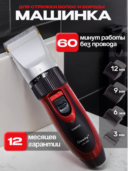 Машинка для стрижки волос и бороды Geemy GM-550 — надежный помощник для ухода за собой как дома, так и в салоне. ✅ Оснащена самозатачивающимися керамическими лезвиями с титановым покрытием, которые не перегреваются, не царапают кожу и не дергают волосы. ✅ Работает до 60 минут без подзарядки благодаря съемному аккумулятору. В комплекте сразу 2 аккумулятора, что позволяет использовать машинку дольше. ✅ Предусмотрено 9 установок длины (0,8–2 мм) и 4 сменные насадки (3, 6, 9 и 12 мм) для идеальной стрижки любой сложности. ✅ Удобная регулировка длины прямо на корпусе делает использование еще комфортнее. ✅ В комплект входят масло и щетка для ухода за лезвиями, зарядное устройство с адаптером и инструкция. Идеальный выбор для мужчин, которые ценят удобство, качество и долговечность!