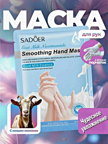 {"widgets":{"@card/UniversalPromoBadge":{"/content/page/fancyPage/defaultPage/universalPromoBadge":{"wrapperProps":{"margins":{"bottom":"3"}},"initialTime":1773222600051,"offerComposeId":"3247053357268420516"}}},"meta":{"/content/page/fancyPage/defaultPage/universalPromoBadge":{"name":"@card/UniversalPromoBadge"}},"collections":{"productServiceSnippets":{"3247053357268420516":{"productSnippet":{"snippetId":"document_id","type":"MODEL_CARD_LAYOUT","productPayload":{"snippetStyle":"NORMAL","title":{"value":"Маска для рук Sadoer, увлажняющая, на основе козьего молока, 2 шт"},"badges":{},"price":{"actualPrice":{"amount":{"intPart":14900,"currency":"UZS"},"style":"RED","type":"OTHER_DISCOUNT"},"oldPrice":{"amount":{"intPart":47900,"currency":"UZS"},"style":"STRIKETHROWED"}},"gallery":{"mediaItems":[{"picture":{"baseUrl":"https://avatars.mds.yandex.net/get-mpic/5214322/2a000001979cc93f2245bcf00210367374bc/","width":1080,"height":1440,"title":"Маска для рук Sadoer, увлажняющая, на основе козьего молока, 2 шт"},"type":"IMAGE"},{"picture":{"baseUrl":"https://avatars.mds.yandex.net/get-mpic/13666838/2a00000197689baa284c93ce8ffd0026b2d6/","width":1080,"height":1440,"title":"Маска для рук Sadoer, увлажняющая, на основе козьего молока, 2 шт"},"type":"IMAGE"},{"picture":{"baseUrl":"https://avatars.mds.yandex.net/get-mpic/15608342/2a00000197689baa2817561a5d12dcc1b939/","width":1080,"height":1440,"title":"Маска для рук Sadoer, увлажняющая, на основе козьего молока, 2 шт"},"type":"IMAGE"},{"picture":{"baseUrl":"https://avatars.mds.yandex.net/get-mpic/15423467/2a00000197689baa2775fdf725a9115e8f92/","width":1080,"height":1440,"title":"Маска для рук Sadoer, увлажняющая, на основе козьего молока, 2 шт"},"type":"IMAGE"},{"picture":{"baseUrl":"https://avatars.mds.yandex.net/get-mpic/12409214/2a00000197689baa277b124a03deca2e0631/","width":1080,"height":1440,"title":"Маска для рук Sadoer, увлажняющая, на основе козьего молока, 2 шт"},"type":"IMAGE"},{"picture":{"baseUrl":"https://avatars.mds.yandex.net/get-mpic/12396668/2a00000197689baa27c6d916e6a59ea66db2/","width":1080,"height":1440,"title":"Маска для рук Sadoer, увлажняющая, на основе козьего молока, 2 шт"},"type":"IMAGE"},{"video":{"url":"https://frontend.vh.yandex.ru/player/vz3xBf7Sqyh4","width":1080,"height":1440,"title":"Маска для рук Sadoer, увлажняющая, на основе козьего молока, 2 шт","preview":{"baseUrl":"https://avatars.mds.yandex.net/get-mpic/11858961/2a00000197929883a078957ef71f58b932ea/","width":1080,"height":1440,"title":"Маска для рук Sadoer, увлажняющая, на основе козьего молока, 2 шт"},"streams":[{"type":"dash","url":"https://strm.yandex.ru/vod/vh-market-upload-converted/vod-content/4834002548135846982/0339e39f-4e19-4d1a-9e77-89591860623b/kaltura/desc_bc9ad6737f49a5255d0d0e6ecf8b8139/2218773458639224015/ysign1=5a3341461f5ab9a3befd0224c3b3788445619bcbb9737c44b601e07593d6b13c,abcID=1632,from=unknown,pfx,sfx,ts=69be69c7/manifest.mpd"},{"type":"hls","url":"https://strm.yandex.ru/vod/vh-market-upload-converted/vod-content/4834002548135846982/0339e39f-4e19-4d1a-9e77-89591860623b/kaltura/desc_bc9ad6737f49a5255d0d0e6ecf8b8139/2218773458639224015/ysign1=d0c0ef109c085cb17fbee6e583d952ec56e6e757593f50dcd923a7221187fb0c,abcID=1632,from=unknown,pfx,sfx,ts=69be69c7/master.m3u8"}],"playerId":"vz3xBf7Sqyh4"},"type":"VIDEO"}]},"rating":{"ratingValue":4.6,"ratingCount":56,"reviewsCount":7,"ratingCountStats":{"cnt1":3,"cnt2":1,"cnt3":2,"cnt4":2,"cnt5":48},"snippet":{"rating":"4.6","type":"product","description":"(56) · 373 купили","descriptionList":["(56)","373 купили"],"ratingStar":"4.5"}},"wishlistButton":{"businessId":204203168,"mskuId":4452391124,"modelId":1222600352,"oskuId":4452391124,"offerId":"bleDrZ-rA4z9kmC0gNdhfA"},"productRating":{"rating":"4.6","type":"product","description":"(56) · 373 купили","descriptionList":["(56)","373 купили"],"ratingStar":"4.5"}},"baobabPayload":{"type":"offer","wareId":"bleDrZ-rA4z9kmC0gNdhfA","modelId":1222600352,"marketSku":"4452391124","snippet_type":"product","isExpress":false,"price":47900,"additionalPrices":[{"priceType":"withDiscount","priceValue":14900},{"priceType":"unknown","priceValue":47900}],"hid":4852774,"shopId":431782,"shopSku":"dcmp-2505629274691110987","supplierId":204458548,"supplierType":3,"isUltima":false,"oskuId":4452391124,"snippetTheme":"GRID_FULL","stockCount":55,"rating":{"rating":"4.6","purchaseCount":"373","gradesCount":"56","ratingType":"product"},"promoLogJoinId":"b8aba8cd2838e47c145f912a71539419/0db60711b33db6ae"},"themeType":"GRID_FULL"}}}}}