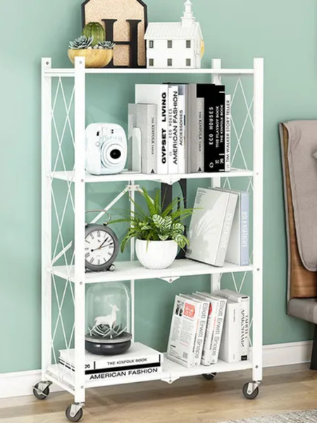 Металлический стеллаж 4 яруса, складной с колёсиками, этажерка-полка для дома, кухни, книг