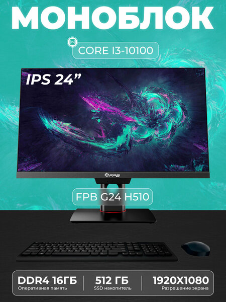 Моноблок для работы и учебы FPB G24, H510, I3-10100, DDR4 16 ГБ, SSD 512 ГБ
