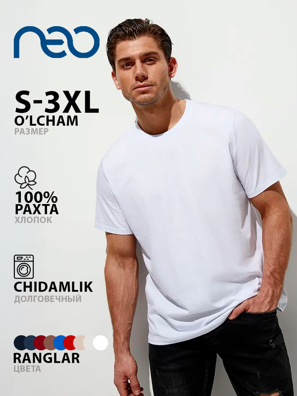 {"widgets":{"@card/DeliveryConsole":{"/content/page/fancyPage/defaultPage/deliveryConsole":{"configType":"MAIN_DO","shouldShowDeliveryPointAgitationBanner":true,"urlSlug":"muzhskaya-futbolka-bazovaya-neo-100-khlopok"}}},"meta":{"/content/page/fancyPage/defaultPage/deliveryConsole":{"name":"@card/DeliveryConsole"}},"collections":{"deliveryConsole":{"13854557529203744671":{"title":"Доставка Маркета","signals":[],"options":[{"title":"Маркет","type":"MARKET","isChecked":true,"transitionId":"tr_2780482369426114086","subtitle":{"date":{"value":"9 мар","features":["THINGRAY"]},"price":{"value":0,"valueFeatures":["THINGRAY"],"currency":"UZS","currencyFeatures":["THINGRAY"]}},"details":[{"title":"","deliveryOptions":[{"id":"13128766615295154071","address":{"addressLine":"Ташкент","addressLineObject":{"abbreviativePart":"Ташкент","isRegion":true,"isTagged":false}},"additionalInfo":"","signals":[{"title":{"content":[{"type":"literal","value":"15-30 мин. курьером в удобный момент"},{"type":"icon","value":"ai_chevron"},{"type":"newline","value":""}],"feature":"PRIMARY"},"analytics":{"type":"onClickSignal","text":"15-30 мин. курьером в удобный момент"},"popupInfoId":"pp_18064787403457921207"}]}],"signals":[]}],"baobabModel":{"deliveryType":"ON_DEMAND","deliveryDays":4,"priceValue":0,"priceCurrency":"UZS","deliveryDateFrom":"2026-03-09","deliveryDateTo":"2026-03-09","deliveryText":"9 мар, по клику","precise":true,"selected":false,"calculatedFor":"1104c838b83f79c008df7d7a05c6846d;yakYWUUFI7yL73tWncob3A"}}]}},"deliveryInfoOption":{"13128766615295154071":{"dayFrom":4,"dayTo":4,"deliveryType":"onDemand","date":{"value":"9 мар","features":["BOLD"]},"service":{"value":"по клику","features":["THINGRAY"]},"deliveryPrice":{"value":0,"currency":"UZS"},"price":{"value":0,"valueFeatures":["THINGRAY"],"currency":"UZS","currencyFeatures":["THINGRAY"]},"style":"BLUE","baobabModel":{"deliveryType":"ON_DEMAND","deliveryDays":4,"priceValue":0,"priceCurrency":"UZS","deliveryDateFrom":"2026-03-09","deliveryDateTo":"2026-03-09","deliveryText":"9 мар, по клику","precise":true,"selected":false,"calculatedFor":"1104c838b83f79c008df7d7a05c6846d;yakYWUUFI7yL73tWncob3A"},"consoleDate":{"value":"9 мар","features":["THINGRAY"]}}}}}