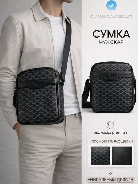 На регулируемом плечевом ремне Основной большой отсек на молнии, внутри есть также потайной карман нам молнии Материал: 100% ПВХ поливинилхлорид износостойкий и надежный Вместимая сумка: поместятся общие тетради и учебники классического размера 1 задний небольшой карман на молнии Размер: 25 х 20 х 6 см Отлично подойдёт в качестве подарка близкому человеку на любой праздник 1 передний карман на магните Практичная мужская сумка. Сумка носится на плече и выглядит элегантно. Красота и выразительность сумки отлично сочетаются с ее прочностью, удобством и практичностью. Изготовлены из прочной Эко- Кожи износостойкий и надежной фурнитурой. Сумка имеет три отделения и одно потайное на молнии и ещё одно закрывается на магнитные кнопки. Основными достоинствами изделия являются: лаконичный, продуманный до мелочей дизайн, что обеспечивает максимально удобное и комфортное использование. Стиль и Удобство: Дизайн: Комбинируя стиль и функциональность, эта сумка студенческая привносит в ваш образ ноту элегантного стиля. Водоотталкивающий Материал: Никакие дожди или пятна не смогут испортить вашу настроенную встречу или повседневное приключение благодаря водоотталкивающему материалу. Просторное Пространство: С достаточным пространством для книг, планшета и других необходимых вещей, эта сумка максимизирует вашу организацию и комфорт во время перемещения. Регулируемый Плечевой Ремень: Подстраиваемый плечевой ремень обеспечивает идеальную посадку и комфорт даже в течение долгих переходов. Многофункциональность: Идеально подходит как для повседневного использования, так и для деловых встреч, путешествий или учебы - ваш верный спутник в любой ситуации. Наслаждайтесь высоким качеством и эстетикой каждого момента с нашей мужской сумкой через плечо - вашим прекрасным компаньоном в мире стиля и практичности."
