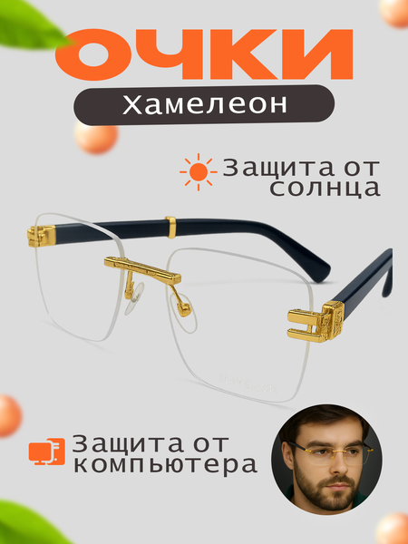 Солнцезащитные очки-хамелеоны без оправы Современные и лёгкие очки-хамелеоны — идеальный выбор для повседневного ношения, вождения, прогулок и путешествий. Интеллектуальные линзы автоматически подстраиваются под уровень освещённости, обеспечивая комфорт и защиту для ваших глаз в любых условиях. Основные особенности: • Линзы-хамелеоны — адаптируются к освещению: темнеют на солнце, светлеют в помещении • Безободковая конструкция — ультралегкий дизайн, не перекрывающий обзор • Защита UV400 — надёжный щит от ультрафиолетовых лучей • Носоупор 360° — гибкая посадка, не скользит, подходит для разных форм носа • Универсальный стиль — подойдут как мужчинам, так и женщинам Материалы: • Линзы — ударопрочный поликарбонат • Оправа — лёгкий металл и пластик • Цифровой фильтр — отсутствует Размеры: • Ширина очков: 140 мм • Высота линзы: 45 мм • Ширина линзы: 60 мм • Переносица (зазор): 15 мм • Длина дужек: 140 мм Подарите глазам комфорт, стиль и защиту — каждый день. Есть вопросы? Мы всегда на связи