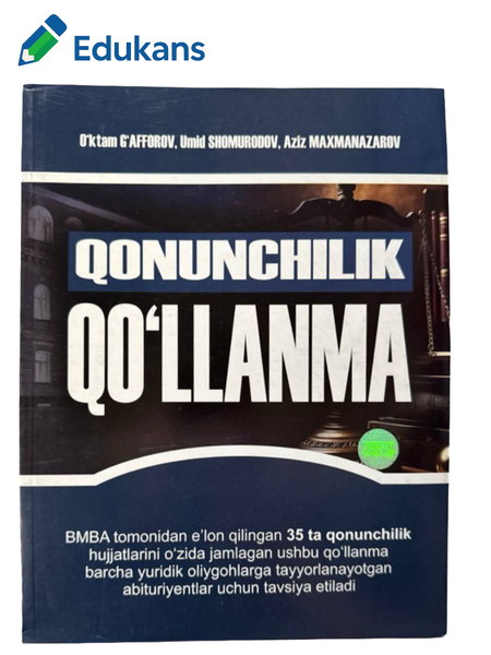 "онунчилик лланма" китоби юридик олийгоҳларга тайёрланаётган абитуриентлар учун махсус яратилган! Бу ноёб лланма сизнинг ҳуу соҳасидаги билимларингизни мустаҳкамлаш учун энг ишончли манба ҳисобланади. Нега айнан бу китоб? ✅ бмба томонидан тавсия этилган: Китоб Билим ва малакаларни баҳолаш агентлиги (бмба) томонидан эълон илинган 35 та онунчилик ҳужжатини з ичига олади. Бу эса сизнинг ишга кириш имтиҳонларига тли тайёрланишингизни таъминлайди. Барча муҳим ҳужжатлар бир жойда: Сизга керак бладиган барча онунлар, кодекслар ва боша норматив-ҳууий ҳужжатлар бир китобда жамланган. Албатта, бу ватингизни тежаб, иш жараёнини анча осонлаштиради! ✍ Малакали муаллифлар: Ўктам аффоров, Умид Шомродов ва Азиз Махманазаров каби соҳа мутахассислари томонидан тузилган ушбу лланма маълумотларнинг анилиги ва долзарблигини кафолатлайди. Ўишга кириш учун идеал восита: Агар сиз Тошкент Давлат Юридик Университети (ТДЮ) ёки боша юридик йналишдаги олийгоҳларга ишга киришни масад илган блсангиз, бу китоб сиз учун энг асосий манба блиб хизмат илади. Масадли ув жараёни: лланма фаат абитуриентлар учун млжаллангани сабабли, ундаги маълумотлар имтиҳон талабларига мос равишда тузилган блиб, кераксиз маълумотлардан холи. ✨ Хулоса: "онунчилик лланма" китоби сизнинг юридик соҳада муваффаиятга эришишингиз учун зарур блган барча имкониятларни беради. Уни харид илинг ва орзуингиздаги талаба блинг!