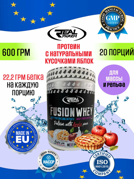 Real Pharm Fusion Whey - это сывороточный протеин, который является одним из наиболее эффективных и быстродействующих видов протеина. Он содержит все необходимые аминокислоты, которые способствуют росту мышечной массы, восстановлению после тренировок и улучшению общего состояния здоровья. Real Pharm Fusion Whey производится компанией Real Pharm, которая зарекомендовала себя на рынке спортивного питания как производитель высококачественных и безопасных продуктов. Вкус "Яблочный пирог" делает этот протеин особенно привлекательным для любителей сладкого. В целом, Real Pharm Fusion Whey - это отличный выбор для тех, кто стремится к достижению своих спортивных целей, заботясь о своем здоровье и благополучии.