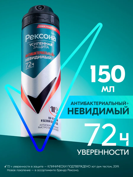 Rexona Men Антиперспирант дезодарант мужской спрей 150мл. Аромат: Антибактериальный.