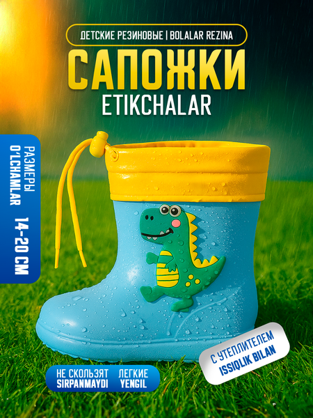 Детские резиновые сапоги с утеплителем и нескользящей подошвой Яркие и удобные сапоги с весёлым дизайном подойдут как для девочек, так и для мальчиков. ✔ Нескользящая подошва из лёгкого и гибкого EVA-материала обеспечивает устойчивость на мокрых поверхностях. ✔ Съёмный тёплый флисовый вкладыш — легко стирается в машинке и быстро сохнет на батарее. ✔ Отличный выбор для осени, дождливой весны и слякотной погоды. Весёлый дракоша и единорожка обязательно понравятся детям, а родителям — лёгкость, гибкость и практичность. Идеальны для прогулок, детского сада и дачи!