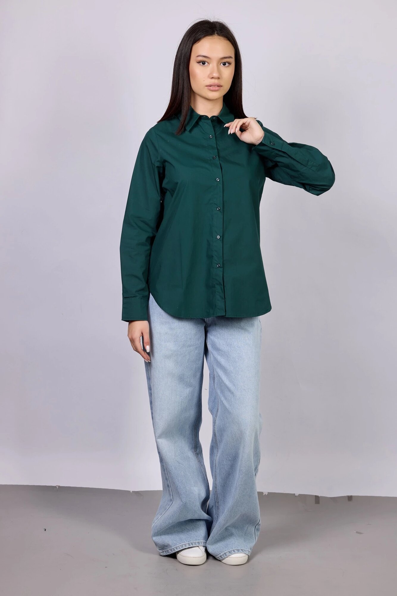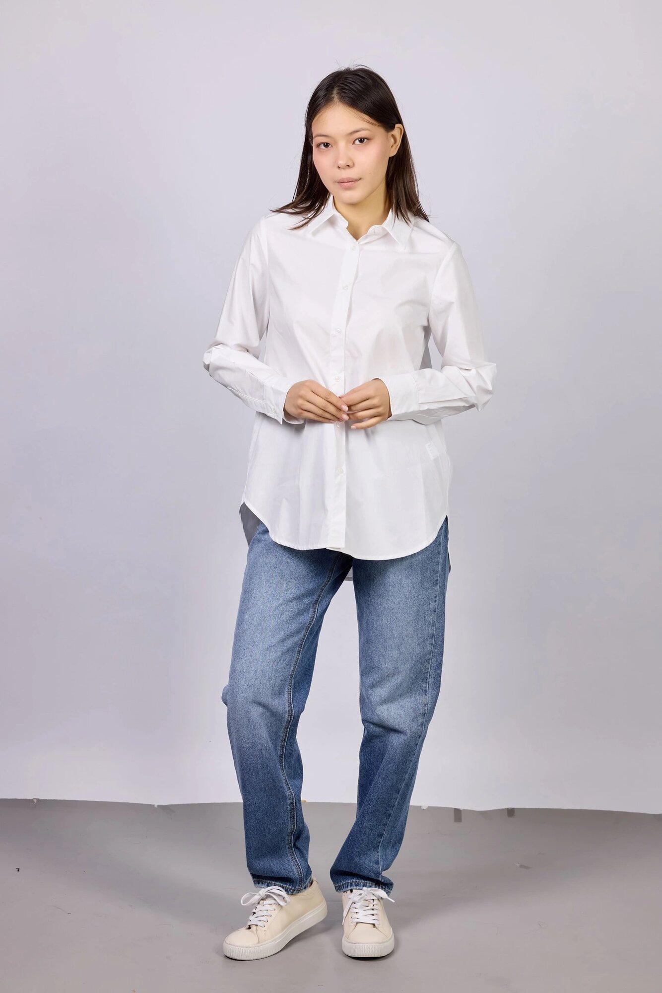 Базовая рубашка прямого свободного кроя с длинными рукавами. Выполнена из натурального воздухопроницаемого и легкого материала, хорошо держит форму и обеспечивает комфорт в течение всего дня.