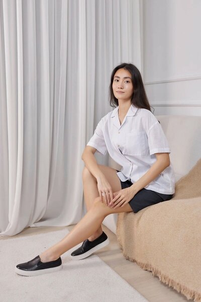 Рубашка свободного кроя с лацканом и двумя накладными карманами, дополненная застежкой на ряд пуговиц. Не совсем классическая модель, но отлично сочетается с брюками, джинсами и юбками.