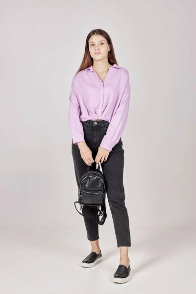 Притягательная укороченная рубашка с резинкой и сборкой по низу. Модель имеет V-образный вырез, драматичный отложной воротник и свободные рукава с широкими манжетами. Отличный вариант для сочетания с брюками, джинсами и не только.