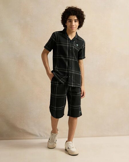 Универсальные мягкие и удобные шорты, которые обеспечивают стильный повседневный образ для вашего сына. Модель оснащена функциональными карманами и эластичным поясом для идеальной посадки. Преимущества: Комфортная посадка на каждый день Эластичный пояс — для удобства и лёгкости движений Функциональные карманы Дышащий 100% хлопок Актуальный клетчатый дизайн Характеристики: Пол: Мальчики (9–14 лет) Цвет: Чёрный Узор: В клетку Посадка: Стандартная Размер модели: 13–14 лет (XL) Уход: Машинная стирка в холодной воде Состав ткани: 100% хлопок