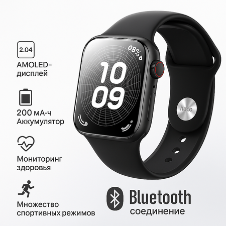 Смарт-часы Hoco Watch DY12 AMOLED 2.04" – стильные и функциональные умные часы с большим сенсорным экраном и расширенными возможностями для здоровья и спорта. Благодаря яркому AMOLED-дисплею 2.04 дюйма, устройство обеспечивает чёткое изображение даже при солнечном свете. Часы поддерживают уведомления о звонках и сообщениях, мониторинг сна, шагомер, пульсометр и другие фитнес-функции. Hoco DY12 AMOLED совместимы со смартфонами через Bluetooth, позволяют управлять музыкой и камерой, а также оснащены множеством спортивных режимов для активного образа жизни. Современный дизайн и удобный силиконовый ремешок делают эти смарт-часы универсальными – они подойдут как для спорта, так и для повседневного ношения.