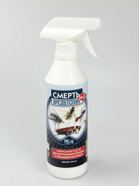 Инсектицид Смерть вредителям №2 - готовый к использованию инновационный инсектицид для защиты дома и придомовой территории от тараканов, клопов, комаров, гусениц, муравьев, ос, мух, блох и других летающих и ползающих насекомых. Эффективный инсектицидный препарат мгновенного действия для уничтожения любых летающих и ползающих насекомых снаружи и внутри помещений. Средство обладает продолжительным периодом действия. Насекомые погибают уже на первые сутки после применения. Смерть вредителям не имеет неприятного запаха и не разрушает озоновый шар делая его безопасным для окружающей среды. Современный инсектицидный спрей действующее вещество которого произведенно на основе тетраметрина и этофенпрокса в Италии. Инсектицидный спрей на столько мощный, что способен уничтожить даже тропических москитов. Быстрое действие инсектицида заметно уже через 30 секунд после применения. Обеспечивает защиту после обработки до 21 дня. Легко применять благодаря удобной крышке-триггеру.