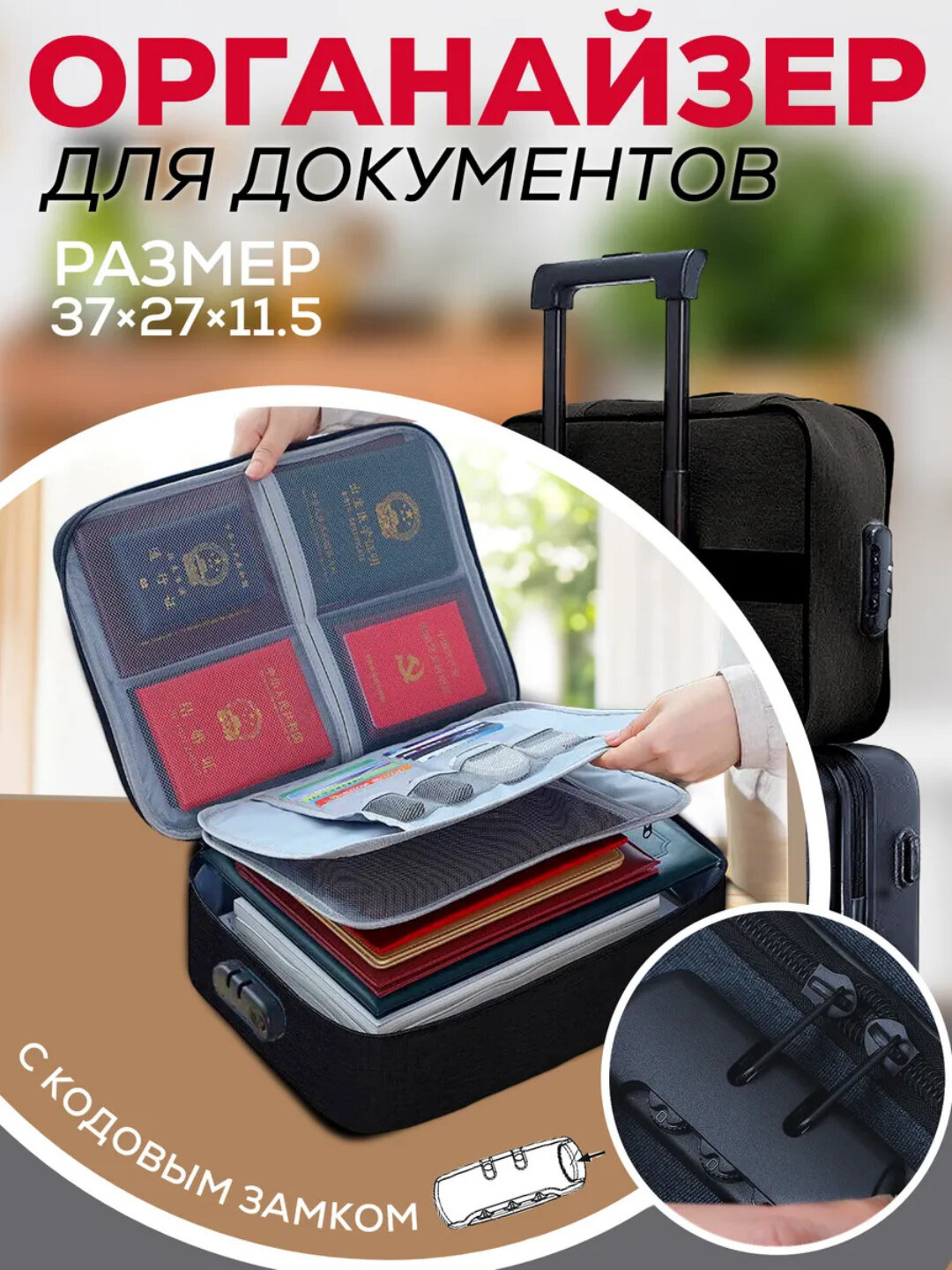Сумка-органайзер A4 из ткани Оксфорд, влагостойкая, для документов, билетов и паспорта, с кодовым замком.