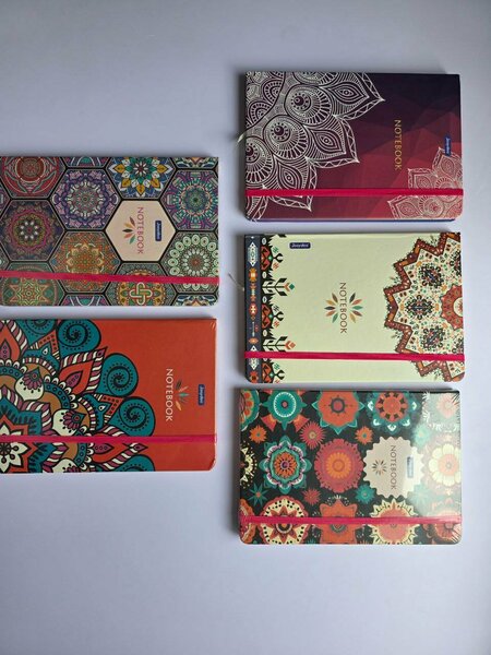 Блокноты, которые вы видите на картинке, имеют очень элегантный и приятный для глаз дизайн. Их основной стиль украшен мандалами и этническими узорами, а цветовые сочетания также очень яркие и красивые. Наличие твердого переплета и эластичной резины обеспечивает комфорт даже в практическом плане – страницы не складываются, заметки сохраняются. ✦ С другой стороны, узоры мандалы вызывают чувство внутреннего спокойствия, творчества и сосредоточенности. Различные варианты цвета и рисунка подходят на любой вкус-в то время как некоторые люди выбирают минималистичный блокнот с белым фоном, другим могут понравиться красочные узоры. Идеально подходит для дневниковых записей, занятий, планирования, Чехол считается эстетически приятным для глаз аксессуаром.
