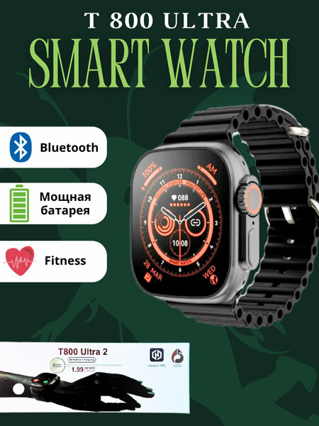 Общие сведенияСтильные Смарт часы Smart Watch 8 Ultra мужские и женские-это обновленная, премиальная модель умных часов. Имеют очень отзывчивый сенсорный дисплей. Работают через собственное приложение Wear pro, которое доступно для любых смартфонов (iphone/ android). В комплекте с часами силиконовый ребристый стильный ремешок, который отлично сидит на любой руке. Умные часы оснащены 2 дюймовым IPS экраном, пульсометром, кислородным мониторингом крови, мультиспортивным режимом и поддержкой беспроводной магнитной зарядкиФункцииИзмерение уровня кислорода в крови, Мониторинг артериального давления, Напоминание о вызове и сообщениях, Напоминание о сидячем положении и необходимости разминки, Часы имеют датчик сердечного ритма, который собирает данные о сердечном ритме в течение 24 часов, Модель помогает контролировать сон, благодаря полному мониторингу, Имеют шагомер, который позволяет контролировать и оценивать количество сожженных калорий в течение всего дня.