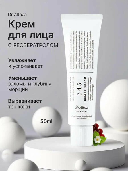 {"widgets":{"@card/UniversalPromoBadge":{"/content/page/fancyPage/defaultPage/universalPromoBadge":{"wrapperProps":{"margins":{"bottom":"3"}},"initialTime":1773469607569,"offerComposeId":"8086658140739415457"}}},"meta":{"/content/page/fancyPage/defaultPage/universalPromoBadge":{"name":"@card/UniversalPromoBadge"}},"collections":{"productServiceSnippets":{"8086658140739415457":{"productSnippet":{"snippetId":"document_id","type":"MODEL_CARD_LAYOUT","productPayload":{"snippetStyle":"NORMAL","title":{"value":"Успокаивающий крем Dr. Althea, 345 Relief, с ресвератролом, 50мл"},"badges":{},"price":{"actualPrice":{"amount":{"intPart":210000,"currency":"UZS"},"style":"RED","type":"OTHER_DISCOUNT"},"oldPrice":{"amount":{"intPart":350000,"currency":"UZS"},"style":"STRIKETHROWED"}},"gallery":{"mediaItems":[{"picture":{"baseUrl":"https://avatars.mds.yandex.net/get-mpic/16342806/2a00000198ecbfbc562263f208f2cb77f286/","width":900,"height":1200,"title":"Успокаивающий крем Dr. Althea, 345 Relief, с ресвератролом, 50мл"},"type":"IMAGE"},{"picture":{"baseUrl":"https://avatars.mds.yandex.net/get-mpic/16310377/2a00000198ecbfbc570b2f282f465387ba6f/","width":900,"height":1200,"title":"Успокаивающий крем Dr. Althea, 345 Relief, с ресвератролом, 50мл"},"type":"IMAGE"},{"picture":{"baseUrl":"https://avatars.mds.yandex.net/get-mpic/14586592/2a00000198ecbfbc552c0cce5bcccc8fc7f2/","width":900,"height":1200,"title":"Успокаивающий крем Dr. Althea, 345 Relief, с ресвератролом, 50мл"},"type":"IMAGE"},{"picture":{"baseUrl":"https://avatars.mds.yandex.net/get-mpic/17022999/2a00000198ecbfbc567c140efc322a41f66d/","width":900,"height":1200,"title":"Успокаивающий крем Dr. Althea, 345 Relief, с ресвератролом, 50мл"},"type":"IMAGE"},{"picture":{"baseUrl":"https://avatars.mds.yandex.net/get-mpic/16661583/2a00000198ecbfbc56a0ec52a3a7b7b8d273/","width":900,"height":1200,"title":"Успокаивающий крем Dr. Althea, 345 Relief, с ресвератролом, 50мл"},"type":"IMAGE"},{"picture":{"baseUrl":"https://avatars.mds.yandex.net/get-mpic/16136863/2a00000198ecbfbc551171bf9ff01954a1da/","width":900,"height":1200,"title":"Успокаивающий крем Dr. Althea, 345 Relief, с ресвератролом, 50мл"},"type":"IMAGE"}]},"rating":{"ratingValue":4.9,"ratingCount":21,"reviewsCount":8,"ratingCountStats":{"cnt1":0,"cnt2":0,"cnt3":0,"cnt4":2,"cnt5":19},"snippet":{"rating":"4.9","type":"product","description":"(21) · 60 купили","descriptionList":["(21)","60 купили"],"ratingStar":"5"}},"wishlistButton":{"businessId":201970279,"mskuId":4675500848,"modelId":1420347855,"oskuId":4608872804,"offerId":"wmoJytmKkPygn_f8R2vvTg"},"productRating":{"rating":"4.9","type":"product","description":"(21) · 60 купили","descriptionList":["(21)","60 купили"],"ratingStar":"5"}},"baobabPayload":{"type":"offer","wareId":"wmoJytmKkPygn_f8R2vvTg","modelId":1420347855,"marketSku":"4675500848","snippet_type":"product","isExpress":false,"price":350000,"additionalPrices":[{"priceType":"withDiscount","priceValue":210000},{"priceType":"unknown","priceValue":350000}],"hid":8475955,"shopId":431782,"shopSku":"SEUL-345-CREAM","supplierId":216413276,"supplierType":3,"isUltima":false,"oskuId":4608872804,"snippetTheme":"GRID_FULL","stockCount":8,"rating":{"rating":"4.9","purchaseCount":"60","gradesCount":"21","ratingType":"product"},"promoLogJoinId":"137d6eb7bc42c101c7fc4feceb307061/e1b1506532f231be"},"themeType":"GRID_FULL"}}}}}
