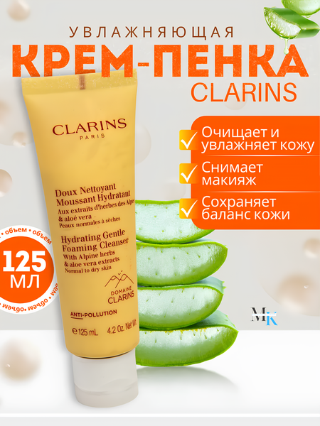 Clarins Hydrating Gentle Foaming Cleanser – Пенка для умывания (125 мл) Нежный уход за вашей кожей! Увлажняющая, глубоко очищающая, против угрей и омолаживающая пенка! Описание продукта: Clarins Hydrating Gentle Foaming Cleanser – это эксклюзивное средство для глубокого очищения, увлажнения и защиты кожи лица. Обогащенный алоэ вера, альпийскими растениями и натуральными экстрактами, этот гель не только делает кожу мягкой и шелковистой, но и защищает ее от загрязнений, пыли и вредных внешних воздействий. После использования ваша кожа станет свежей, гладкой и сияющей. Легкая и мягкая пенка очищает без пересушивания, поддерживает баланс кожи и предотвращает ощущение стянутости. Преимущества: ✅ Глубокое очищение – полностью удаляет загрязнения, пыль и остатки кожного жира. ✅ Интенсивное увлажнение – экстракт алоэ вера увлажняет кожу без пересушивания. ✅ Анти-загрязняющая защита – идеальное решение для городских жителей! Защищает от пыли и токсинов. ✅ Против прыщей – предотвращает появление пятен и акне, выравнивает тон кожи. ✅ Омолаживающий эффект – альпийские растения и натуральные экстракты замедляют появление морщин. ✅ Мягкая и шелковистая кожа – специально разработанная формула делает кожу нежной и гладкой. ✅ Для любого времени года – предотвращает пересушивание кожи как зимой, так и летом. ✅ Экономичный расход – небольшого количества продукта достаточно для длительного использования. Характеристики продукта: Состав: алоэ вера, экстракты альпийских растений, натуральные антиоксиданты и увлажняющие компоненты. Аромат: легкий, приятный, с натуральными растительными экстрактами. Подходит для: сухой и нормальной кожи, а также для чувствительной кожи. Способ применения: нанесите небольшое количество на влажные руки, вспеньте и мягкими движениями очистите лицо, затем смойте теплой водой. Упаковка: удобный тюбик 125 мл. Производитель: Clarins Paris – премиальный бренд с более чем 60-летним опытом в косметической индустрии. Кому подойдет? ✅ Тем, кто подвергается загрязнениям и пыли в течение дня – особенно жителям мегаполисов и тем, кто много времени проводит на улице. ✅ Людям с сухой и чувствительной кожей – увлажняющая формула предотвращает сухость. ✅ Тем, кто хочет эффективно очищать кожу после макияжа – удаляет даже водостойкую косметику. ✅ Мужчинам и женщинам, заботящимся о своей коже – можно использовать после бритья. ✅ Тем, кто хочет сохранить молодость кожи – содержит антивозрастные компоненты. ✅ Тем, кто борется с акне и черными точками – регулирует баланс кожи и предотвращает появление воспалений. Дополнительная информация: Идеально впишется в ваш ежедневный уход! Рекомендуется использовать утром и вечером. Эффективно удаляет макияж! Смывает даже стойкую косметику. Освежает и восстанавливает кожу! Идеально подходит для уставшей и стрессовой кожи. Легкая текстура превращается в нежную пенку, обеспечивая комфортное очищение! 3 Технология Anti-pollution – создает защитный барьер на поверхности кожи, предохраняя от загрязнений и городского смога. 4 Подходит для чувствительной кожи – дерматологически протестированная формула, не вызывающая аллергии. 5 Омолаживающий эффект – экстракт альпийских растений и натуральные антиоксиданты замедляют появление морщин. 6 Борьба с акне и черными точками – балансирует уровень кожного жира и предотвращает появл