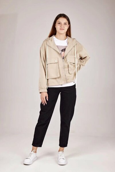 Стильная ветровка с капюшоном и застежкой на молнию в спортивном стиле. Свободный крой и спущенная линия плеча придают модели больше комфорта. Универсальное решение для активного отдыха и прогулок. Отлично смотрится с кюлотами, брюками-карго, спортивными брюками, велосипедками.
