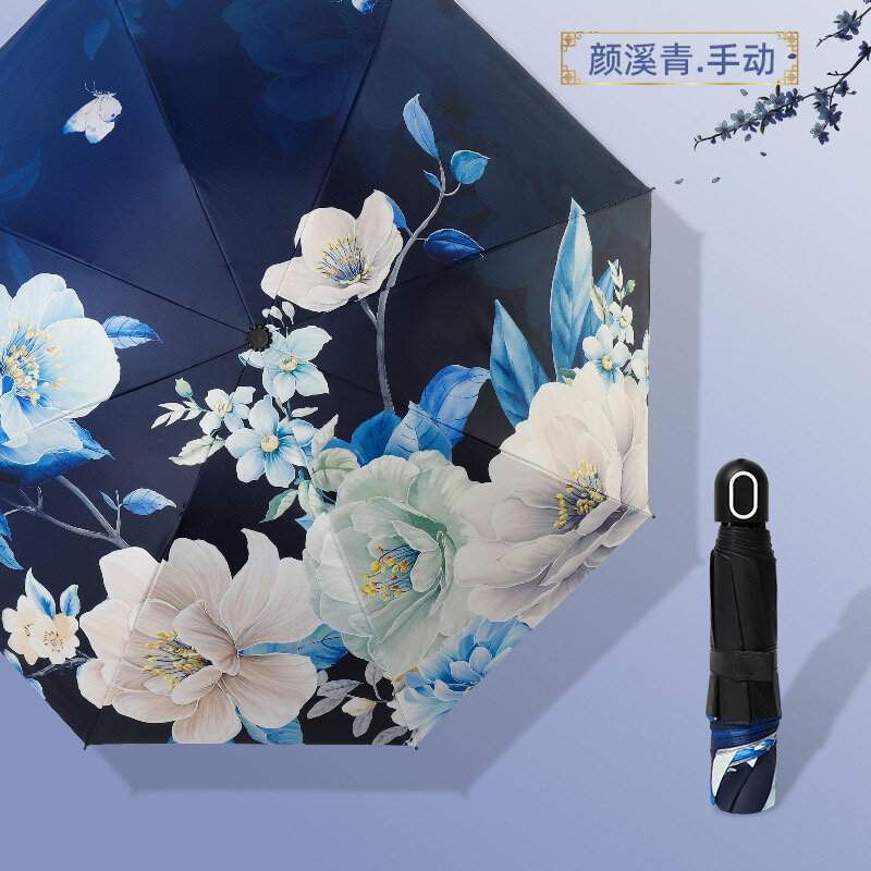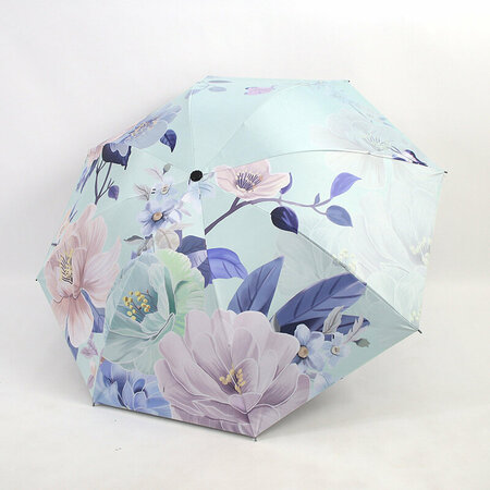 Характеристика изделия: Тип: складной, компактный. Цвет: тёмно-синий фон с крупными бело-голубыми цветами (стильная акварельная роспись). Материал купола: плотная водоотталкивающая ткань, хорошо защищает от дождя. Механизм: ручной (открывается и закрывается вручную). Размер: удобно складывается, помещается в сумку или рюкзак. Ручка: компактная, эргономичная, с фиксатором. Особенности и преимущества: Изящный и женственный дизайн с большими цветами. Лёгкий и удобный — легко носить с собой каждый день. Плотный материал обеспечивает надёжную защиту от дождя. Стильный аксессуар, который дополнит образ.