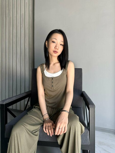 Комплектация: Верх: Майка на широких бретелях с круглым вырезом и тремя декоративными пуговицами на груди. Низ: Свободные широкие брюки с высокой посадкой и мягкой резинкой на поясе, без застёжек. Материалы: Мягкий, дышащий и струящийся трикотаж — вероятнее всего, это вискоза с добавлением эластана (обеспечивает комфорт и эластичность). Ткань имеет лёгкий шелковистый блеск, что придаёт костюму более аккуратный и ухоженный вид. Крой: Свободный, не сковывающий движения. Детали: Декоративная планка с пуговицами на топе делает образ более интересным, а эластичный пояс на брюках обеспечивает удобную посадку. Назначение: идеален для дома, отдыха, сна или лёгкой прогулки в тёплое время года.